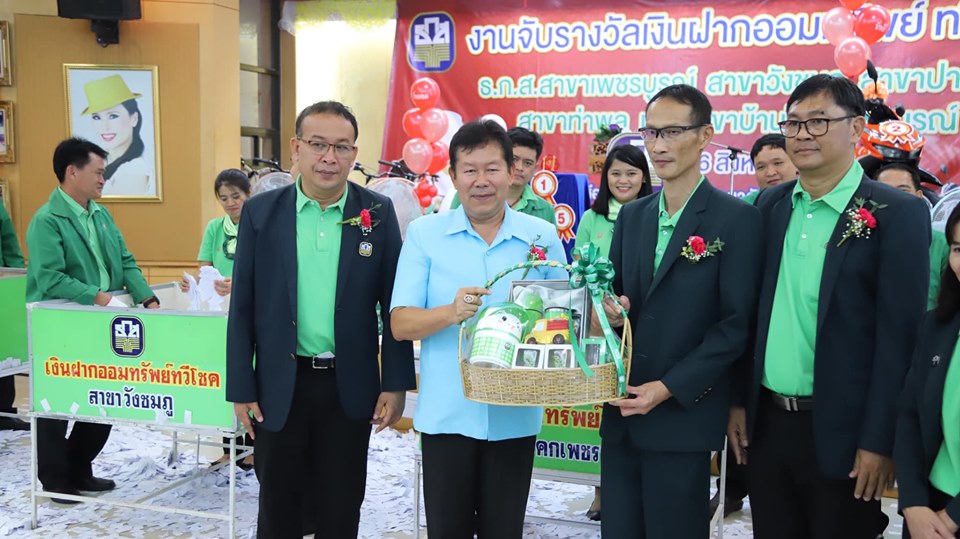 สำหรับการจับรางวัลเงินฝากออมทรัพย์ทวีโชค ครั้งที่ 1 ประจำปี 2562 เป็นการจับรางวัลให้กับผู้โชคดี ให้กับลูกค้าของ ธ.ก.ส.สาขาเพชรบูรณ์ ธ.ก.ส.สาขาปากน้ำ ธ.ก.ส.สาขาบ้านโคก ธ.ก.ส.สาขาท่าพล และ ธ.ก.ส.สาขาวังชมพู โดย ดร.เสกสรร นิยมเพ็ง นายกเทศมนตรีเมืองเพชรบูรณ์ ได้รับเกียรติให้เป็นประธานจับรางวัลใหญ่ ทองคำแท่ง หนัก 5 บาท ให้กับลูกค้า ธ.ก.ส ทั้ง 5 สาขา