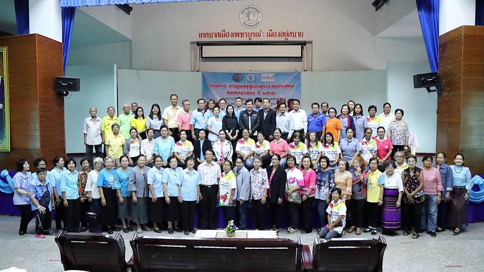 เมื่อเวลา 09.00 น. วันที่ 20 สิงหาคม 2562 ณ หอวัฒนธรรมนครบาลเพชรบูรณ์ ดร.เสกสรร นิยมเพ็ง นายกเทศมนตรีเมืองเพชรบูรณ์ เป็นประธานในพิธีเปิดโครงการการดูแลผู้สูงอายุภาวะสมองเสื่อมแบบครบวงจร ประจำปี 2562 โดยมี อ.ชัยพร หาพุทธา ประธานชมรมผู้สูงอายุนครบาลเพชรบูรณ์ เป็นผู้กล่าวรายงาน มีสมาชิกสภาเทศบาล สมาชิกชมรมผู้สูงอายุ นครบาลเพชรบูรณ์ และ อสม.ในเขตเทศบาลเมืองเพชรบูรณ์ เข้าร่วมอบรม ปัจจุบันเทศบาลเมืองเพชรบูรณ์มีผู้สูงอายุที่มีอายุ 60 ปี ขึ้นไป 4,330 คน คิดเป็นร้อยละ 20.23 ของประชากรทั้งหมด และจะมีจำนวนผู้สูงอายุเพิ่มขึ้นเรื่อยๆ ผู้สูงอายุมีปัญหาด้านสุขภาพเจ็บป่วยเรื้อรัง โรคต่างๆ ได้แก่ ความดัน โลหิตสูง เบาหวาน ข้ออักเสบ ปวดข้อ และที่สำคัญโรคสมองเสื่อมที่มีจำนวนมากขึ้น ไม่ได้กระทบกับผู้ป่วยเพียงผู้เดียว แต่ยังกระทบกับผู้ดูแลและครอบครัวอีกด้วย ทั้งนี้เพื่อส่งเสริมให้ผู้สูงอายุมีความรู้ในการดูแลตนเองป้องกันและชลอการเกิดภาวะสมองเสื่อม เกิดระบบการดูแลป้องกันและชะลอการเกิดภาวะสมองเสื่อมในชุมชน และกระตุ้นให้ทุกภาคส่วนมีส่วนร่วม ในการดูแลผู้สูงอายุภาวะสมองเสื่อมแบบครบวงจร โดยอบรมแบ่งออกเป็น 3 รุ่น ระหว่างวันที่ 20-23 สิงหาคม 2562