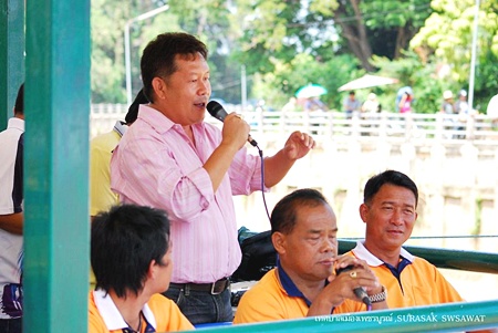 การแข่งขันพายเรือทวนน้ำ ณ ท่าน้ำวัดไตรภูมิ ในงานประเพณีอุ้มพระดำน้ำประจำปี 2555