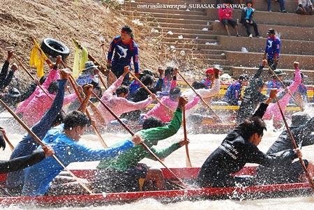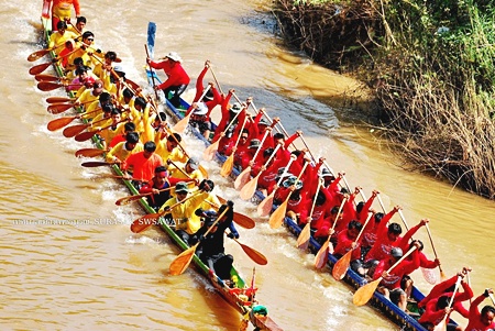 การแข่งขันพายเรือทวนน้ำ ณ ท่าน้ำวัดไตรภูมิ ในงานประเพณีอุ้มพระดำน้ำ จังหวัดเพชรบูรณ์ ประจำปี 2555