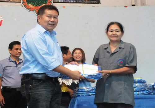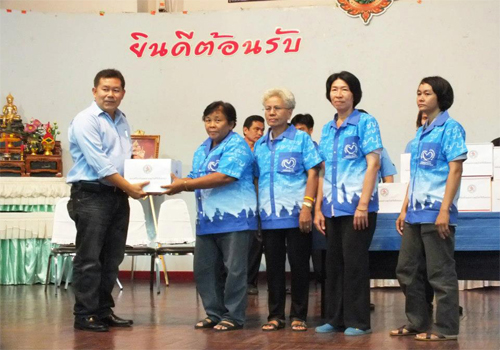 อสม.ทุกคน และมอบทรายกำจัดลูกน้ำยุงลาย เพื่อใช้ในการรณรงค์ป้องกันและควบคุมโรคไข้เลือดออกในชุมชน