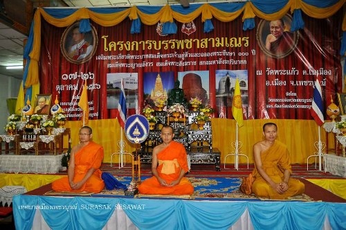 เมื่อเวลา 16.00 น. วันที่ 17 ตุลาคม 2556 นายวิเชียร จันทรโณทัย ผู้ว่าราชการจังหวัดเพชรบูรณ์ เป็นประธานเปิดโครงการบรรพชาสามเณรเฉลิมพระเกียรติพระบาทสมเด็จพระเจ้าอยู่ หัว และฉลองพระชันษา ๑๐๐ ปี สมเด็จพระญาณสังวร สมเด็จพระสังฆราช สกลมหาสังฆปริณายก จำนวน ๑๐๐ รูป ในการนี้ นายเสกสรร นิยมเพ็ง นายกเทศมนตรีเมืองเพชรบูรณ์ เป็นผู้กล่าวรายงาน พร้อมด้วยนายสุชาติ ราษดุษฎี รองผู้ว่าราชการจังหวัดเพชรบูรณ์ หัวหน้าส่วนราชการ ร่วมเป็นเกียติในพิธีเปิด