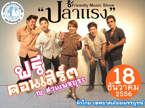 ขอเชิญทุกท่านมาสัมผัสงานดนตรีสบายสไตล์ "ปล้ำแรง" วงดนตรีอารมณ์ดี...ฟังกี่ทีก็มีอารมณ์ ได้ในวันพุธที่ 18 ธันวาคม 2556 ตั้งแต่เวลา 18.00 น. เป็นต้นไป ณ สวนสาธารณะเพชบุระ