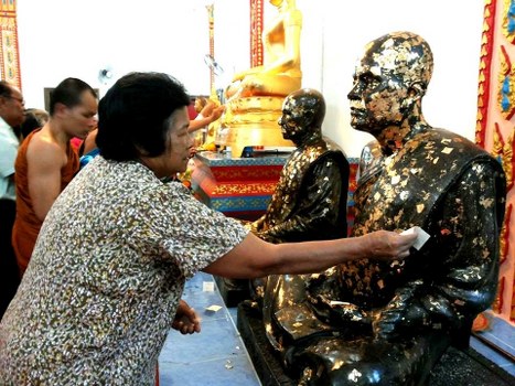 ในอดีตที่ผ่านมาแล้ว ทางวัดช้างเผือกมีเจ้าอาวาสมาแล้วกว่า 19 รูป ซึ่งปัจจุบันมี พระอธิการทองใบ เตชปัญโญ เป็นเจ้าอาวาส มีพระสงฆ์จำนวน 17 รูป สำหรับงานประจำปีปิดทองพระ ทางวัดได้ปฏิบัติเป็นประเพณีสืบต่อกันมาทุกๆปี เป็นบ่อเกิดทางวัฒนธรรมของสังคมสืบทอดกันมา เริ่มต้นจากเมื่อครั้งที่หลวงพ่อแก้ว สุภัตโต อดีตเจ้าอาวาสได้มรณภาพเมื่อปี พ.ศ.2517 ด้วยความเคารพรักและศรัทธาของพุทธศาสนิกชนจึงได้มีการจัดสร้างรูปหล่อเท่า องค์จริงของท่านขึ้น และจัดพิธีทางพุทธศาสนา ปิดทองรูปหล่อหลวงพ่อแก้วและทอดผ้าป่าสามัคคี โดยถือวันที่ 19 มกราคม ซึ่งเป็นวันจัดพิธีฌาปนกิจศพของท่าน เป็นวันเริ่มงาน เดิมจัดงานระหว่างวันที่ 19-21 มกราคม ของทุกปี แต่ต่อมาได้ปรับเปลี่ยนตามความเหมาะสม ซึ่งในปีนี้ได้จัดขึ้นระหว่างวันที่ 8-10 มกราคม ซึ่งต่อมา หลวงพ่ออุทัย อดีตเจ้าอาวาสอีกท่านหนึ่งได้ถึงแก่มรณภาพ จึงได้สร้างรูปหล่อของท่านเพิ่มขึ้นและให้พุทธศาสนิกชนได้นมัสการปิดทองใน งานประจำปี โดยรายได้จากการจัดงานดังกล่าวนี้จะนำไปบูรณะปฏิสังขรณ์พระอุโบสถเสนา ถาวรวัตถุให้คงสภาพการใช้งานเป็นประโยชน์ต่อชุมชนและไว้ใช้จ่ายในกิจกรรม อื่นๆของทางวัดต่อไป