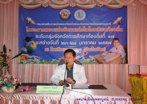 เมื่อเวลา13.30 น.วันที่ 23 ม.ค.2557 นายเสกสรร นิยมเพ็ง นายกเทศมนตรีเมืองเพชรบูรณ์ เป็นประธานเปิดโครงการสอบแข่งขันคนเก่งในโรงเรียนท้องถิ่น ระดับกลุ่มจังหวัดการศึกษาท้องถิ่นที่ 17 ระหว่างวันที่ 23 - 24 ม.ค.2557 ณ โรงเรียนเทศบาล 1 (บ้านในเมือง) อ.เมือง จ.เพชรบูรณ์ มีนายนราวุธ กุนาคำ รองนายกเทศมนตรี กล่าวรายงาน มีสมาชิกเทศบาล ปลัดและรองปลัดเทศบาล และหัวหน้าส่วนราชการร่วมพิธีเปิด โดยได้รับเกียรติจาก ดร.วิศัลย์ โฆษิตานนท์ นายกสภามหาวิทยาลัยราชภัฏเพชรบูรณ์ เป็นวิทยากรบรรยายพิเศษ มีนักเรียนและครูจากกลุ่มโรงเรียนการศึกษาท้องถิ่น 17 เข้าร่วมกว่า 200 คน