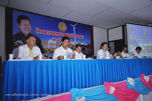 เมื่อเวลา 10.30 น.วันที่ 12 ก.พ.2557 นายเสกสรร นิยมเพ็ง นายกเทศมนตรีเมืองเพชรบูรณ์ พร้อมด้วย ประธานและรองประธานสภาเทศบาล สมาชิกสภาเทศบาล ในแต่ละเขต เปิดเวทีรับฟังปัญหาของพี่น้องประชาชนในเขตเลือกตั้งที่ 1 ประกอบไปด้วย ชุมชนที่ 1,6,7,8,9,17 ในโครงการเทศบาลพบ ประชาชน ประจำปี 2557 ณ ห้องประชุมชาญอนุสรณ์ เทศบาลเมืองเพชรบูรณ์ เพื่อรับฟังปัญหา และร่วมระดมความคิดเห็นแก้ไขปัญหาพัฒนาชุมชน โดยมี คณะกรรมการชุมชน คณะกรรมการศูนย์สงเคราะห์ราษฎร คณะกรรมการอาสาสมัครสาธารณสุขประจำหมู่บ้าน (อสม.) คณะกรรมการที่ปรึกษาชุมชน เข้าร่วมเสนอปัญหากันอย่างพร้อมเพรียง