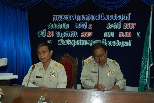 เมื่อเวลา 10.00 น. วันที่ 29 พ.ค.2557 นายเสกสรร นิยมเพ็ง นายกเทศมนตรีเมืองเพชรบูรณ์ ได้ขอเปิดประชุมสภาสมัยสามัญ สมัยที่ 2 ประจำปี 2557 ต่อ นายอรา่ม มีเดช ประธานสภาเทศบาลเมืองเพชรบูรณ์ เพื่อพิจารณาขออนุมัติงบประมาณในการดำเนินการปรับปรุงภายในสำนักงานเทศบาล และตามที่ประชาชนร้องขอ