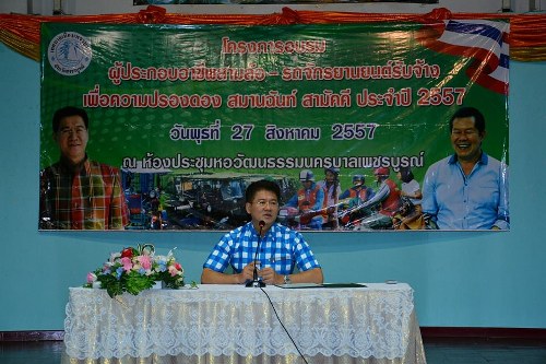 เมื่อเวลา 09.15 น.วันที่ 27 ส.ค.2557 นายวิเชียร จันทรโณทัย ผู้ว่าราชการจังหวัดเพชรบูรณ์ เป็นประธานเปิดโครงการอบรมผู้ประกอบการอาชีพสามล้อ-รถจักรยานยนต์รับจ้าง เพื่อความปรองดอง สมานฉันท์ สามัคคี ประจำปี 2557 ณ หอวัฒนธรรมนครบาลเพชรบูรณ์ นายเดชเลิศ ม่วงอ่ำ รองนายกเทศมนตรี