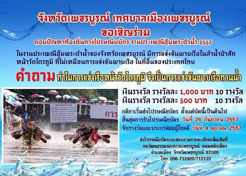 ประกาศ ผลผู้โชคดีตอบปัญหาท้องถิ่นทางไปรษณียบัตร ในงานประเพณีอุ้มพระดำน้ำจังหวัดเพชรบูรณ์