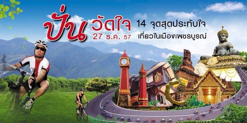 เทศบาลเมืองเพชรบูรณ์ ร่วมกับชมรมจักรยานเสือเพชรบูรณ์ โดยการสนับสนุนของ สปสช. จัดปั่นจักรยานเพื่อสุขภาพ ผ่าน 14 จุดสุดประทับใจเที่ยวในเมืองเพชรบูรณ์ ในวันอาทิตย์ที่ 28 ธันวาคม 2557 ณ หอโบราณคดีเพ็ชรบูรณ์อินทราชัย