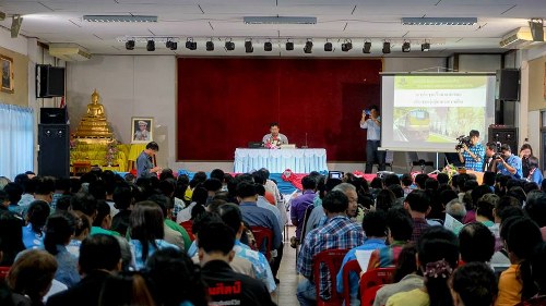 การประชุมปรึกษาสาธารณะ (ประชุมผู้นำทางความคิด) ทางรถไฟ สายจัตุรัส-ชัยภูมิ-เลย-หนองบัวลำภู หรือ ลำนารายณ์-เพชรบูรณ์-เลย-หนองบัวลำภู มีพี่น้องประชาชนจากหลายอำเภอใน จังหวัด เพชรบูรณ์มาร่วมการรับฟังและเสนอข้อคิด ในการสร้างทางรถไฟ จัดโดยการรถไฟแห่งประเทศไทย ณ ห้องประชุมชาญอนุสรณ์ เทศบาลเมืองเพชรบูรณ์