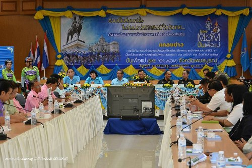 (BIKE FOR MOM) จังหวัดเพชรบูรณ์ ณ ห้องประชุมชัน 5 ศาลากลางจังหวัดเพชรบูรณ์ ีมีผู้แถลงข่าวประกอบไปด้วย พลตรีกษิดิส หลักกรด ผู้บัญชาการกองกำลังรักษาความสงบเรียบร้อย กองพลทหารม้าที่ 1 เป็นประธาน พ.อ.สมชาย ทาวงศ์มา เลขาธิการจังหวัดทหารบกเพชรบูรณ์