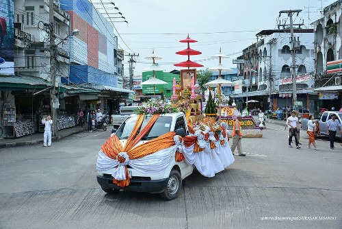 ธาน มีคณะผู้บริหารประธานและรองประธานสภาเทศบาล สมาชิกสภาเทศบาล หัวหน้าส่วนราชการ และเจ้าหน้าที่ให้การต้อนรับ มีพี่น้องประชาชน และนักเรียน ร่วมเดินขบวนแห่เทียนพรรษา จากเพชรวราราม ผ่านหน้าหอโบราณเพ็ชรบูรณ์อินทราชัย เลี้ยวซ้ายธนาคารไทยพาณิชย์จำกัด ไปจนถึงธนาคารกรุงเทพจำกัด เลี้ยวขวาไปวงเวียนนครบาลเพชรบูรณ์ ผ่านตลาดเทศบาล 1 จนถึงหอนาฬิกาแชมป์โลกคู่แฝด เขาค้อ - เขาทราย ขบวนได้แยกเพื่อนำต้นเทียนไปถวายแต่ละวัดตามที่กำหนดไว้