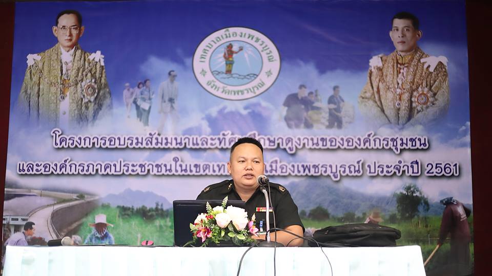 เมื่อเวลา 09.30 น. วันที่ 25 กรกฎาคม 2561 ที่ห้องประชุมชาญอนุสรณ์ เทศบาลเมืองเพชรบูรณ์ ดร.เสกสรร นิยมเพ็ง นายกเทศมนตรีเมืองเพชรบูรณ์ เป็นประธานเปิดการอบรมสัมนาขององค์กรชุมชนและองค์กรภาคประชาชน ในเขตเทศบาลเมืองเพชรบูรณ์ ประจำปี 2561 รุ่นที่ 2 มี จ่าสิบเอกชูชาติ บุญช่วย เจ้าหน้าที่ปฏิบัติการ กองอำนวยการรักษาความมั่นคง ภายในจังหวัดเพชรบูรณ์ เป็นวิทยากรบรรยายพิเศษ เรื่อง สถาบันพระมหากษัตริย์ พร้อมกันนี้ยังมี นายอร่าม มีเดช ประธานสภาเทศบาลเมืองเพชรบูรณ์ นายสมทบ นางนวล สมาชิกสภาเทศบาลเมืองเพชรบูรณ์ และ นางบุปผา ขุนทอง ที่ปรึกษานายกเทศมนตรีเมืองเพชรบูรณ์ เข้าร่วมการเปิดการอบรมในครั้งนี้ด้วย มี กรรมการศูนย์สงเคราะห์เทศบาลเมืองเพชรบูรณ์ ทั้ง 17 ชุมชน เข้าร่วมอบรมกว่า 200 คน