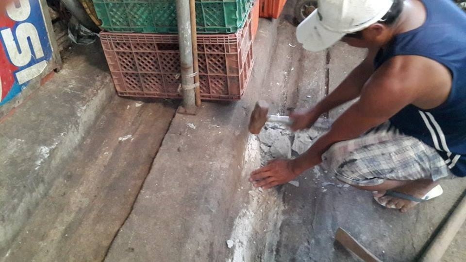 เรื่อง แม่ค้า..โบกปูนปิดรางระบายน้ำถนนสาธารณะ